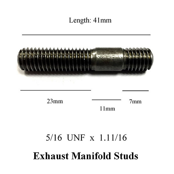 4 x Exhaust Inlet Manifold Studs 5/16 UNF x 1.11/16. Length: 41mm / 23mm – 11mm – 7mm