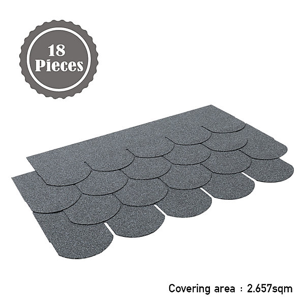 - Color: Grey, Shape: Fish Scale, Material: Asphalt, Quantity: 18pcs/bundle, Coverage: 2.61sqm/bundle