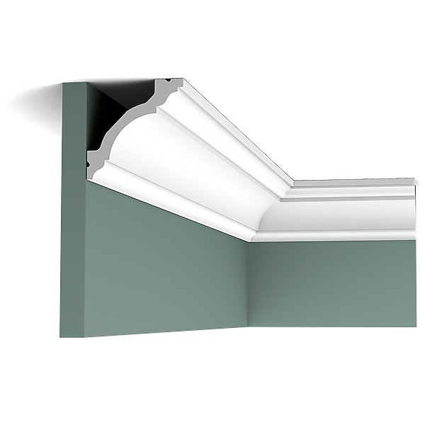 The C213F flexible concave coving is our best selling polyurethane coving design. It features sharp defined lines which set it apart from the standard plaster coving designs offered by most merchants. Light and easy to install and particularly suited to modern houses with low ceilings. The C213 is a classic Orac Decor coving profile made in lightweight polyurethane and supplied with a coat of white primer. The traditional scotia profile has a 3 inch ceiling and three inch wall coverage and measures slightly over 4 inches from tip to tip. As a well established design which sells well. Ideal for kitchen coving and bedroom coving. The coving profile is 8 x 8cm and has a diagonal of 11.3cm. The C213 coving has a concave centre with a step and convex detailing top and double bottom. It is designed as a classic contemporary coving and can be installed in a veriety of house designs. The C213 classic coving is ideal for normal size rooms with standard ceilings. Examples for installation can be; entrance way coving hall coving living room coving dining room coving bedroom coving kitchen coving or as coving for flats or as apartment coving. This is a very versatile coving shape. C213 coving is also available as a matching flexible coving the C213F flexible coving. Curved walls and bays need curved coving (radius coving) and our Orac flexible coving is a unique solution. Coving for bays and curved walls normally can only be fitted by specialist coving installers. However, where the coving needs to be curved our easier flexible coving option can be used. Orac flexible coving can meet most curved coving requirements. Suggested mouldings to use with the C213 coving and C213F curved coving are the P4020 rigid dado rail and P4020F flexible dado rail and the SX118 skirting and SX118F flexible skirting and R09 ceiling rose. Many other options can be chosen from the range. Length: 200cm Height: 8cm Width: 8cm